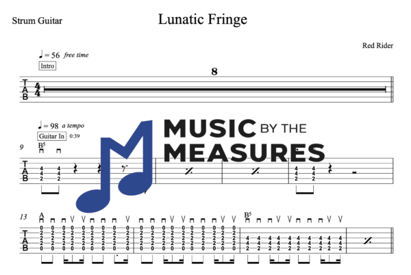 Strum Guitar Tablature for “Lunatic Fringe” by Red Rider