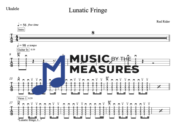 Ukulele Tablature for “Lunatic Fringe” by Red Rider