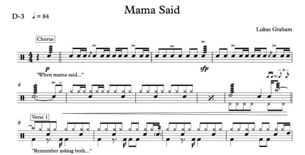 Drum Sheet Music for “Mama Said” by Lukas Graham