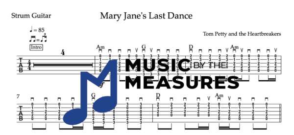 Strum Guitar Tablature for “Mary Jane’s Last Dance” by Tom Petty