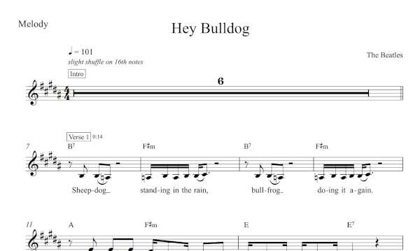 Melody Sheet Music for “Hey Bulldog” by The Beatles.