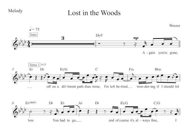Melody Sheet Music for “Lost in the Woods” by Weezer.
