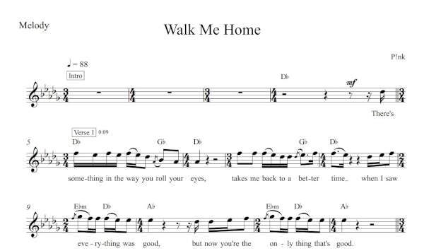 Melody Sheet Music for “Walk Me Home” by Pink.