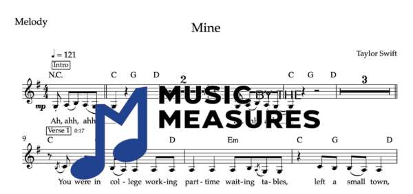 Melody Sheet Music for “Mine” by Taylor Swift