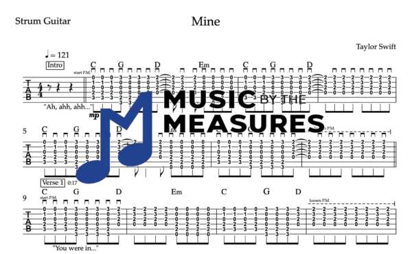 Strum Guitar Tablature for “Mine” by Taylor Swift