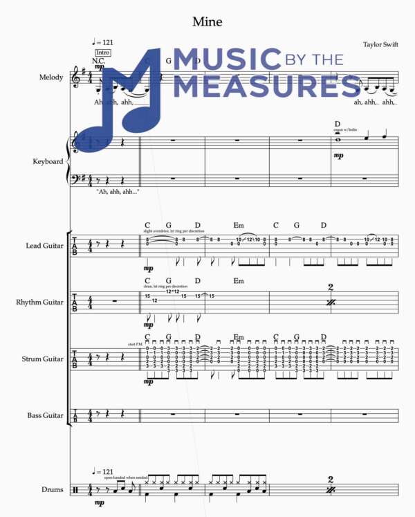 Full Band Sheet Music for “Mine” by Taylor Swift