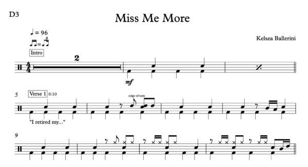 Drum Sheet Music for “Miss Me More” by Kelsea Ballerini