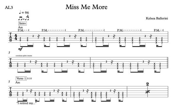 Lead Guitar Tablature for “Miss Me More” by Kelsea Ballerini