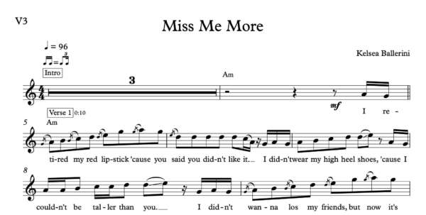 Melody Sheet Music for “Miss Me More” by Kelsea Ballerini