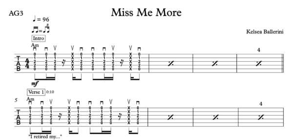 Strum Guitar Tablature for “Miss Me More” by Kelsea Ballerini
