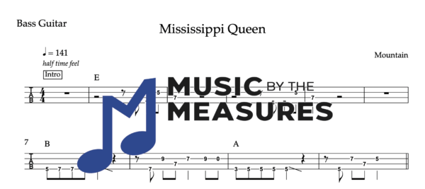 Bass Guitar Tablature for “Mississippi Queen” by Mountain