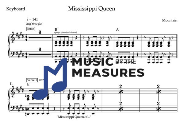 Keyboard Sheet Music for “Mississippi Queen” by Mountain