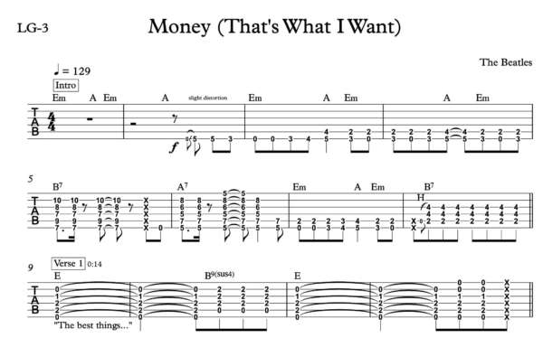Lead Guitar Tablature for “Money (That’s What I Want)” by The Beatles