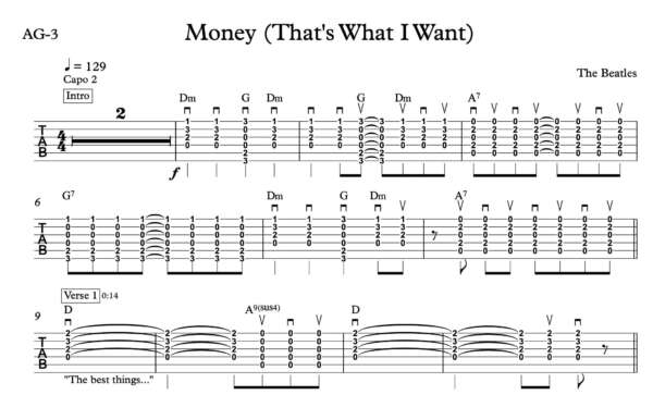 Strum Guitar Tablature for “Money (That’s What I Want)” by The Beatles