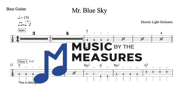 Bass Guitar Tablature for “Mr. Blue Sky” by Electric Light Orchestra