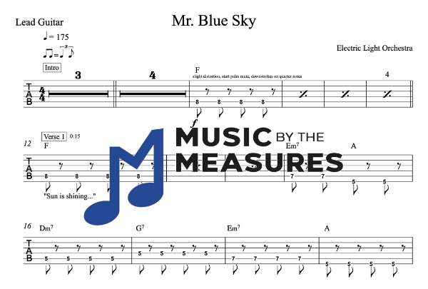 Lead Guitar Tablature for “Mr. Blue Sky” by Electric Light Orchestra