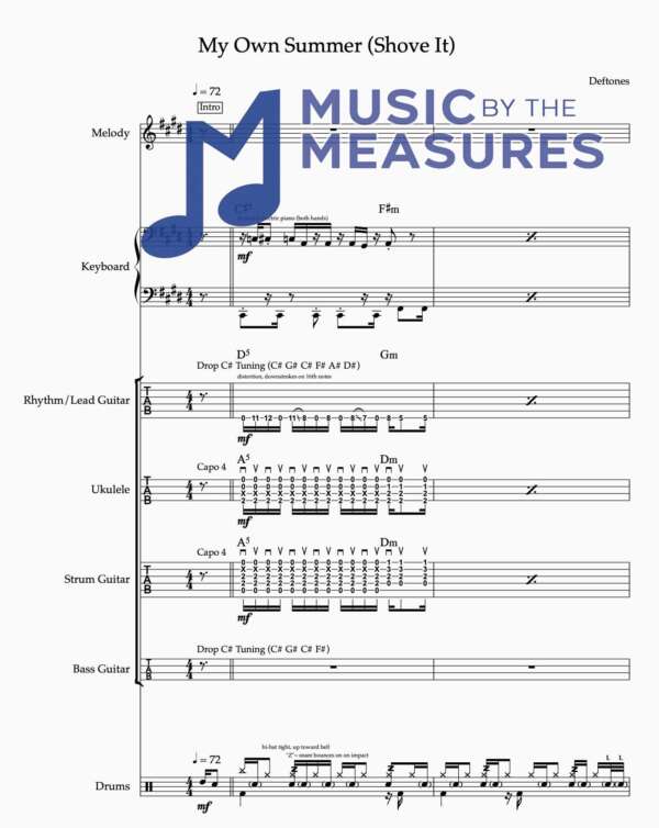 Full Band Sheet Music for “My Own Summer (Shove It)” by Deftones