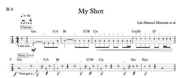 Bass Guitar Tablature for “My Shot” by Lin-Manuel Miranda et al
