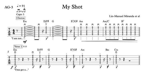 Strum Guitar Tablature for “My Shot” by Lin-Manuel Miranda et al