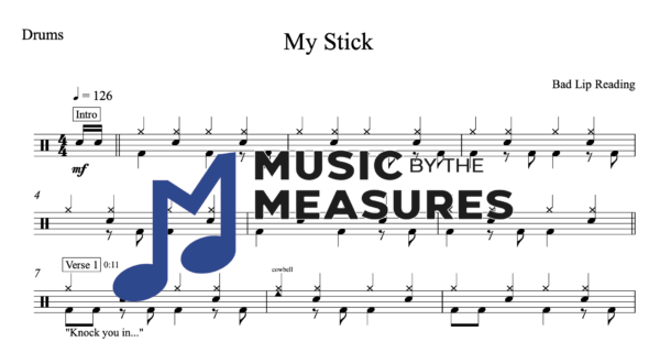 Drum Sheet Music for “My Stick” by Bad Lip Reading