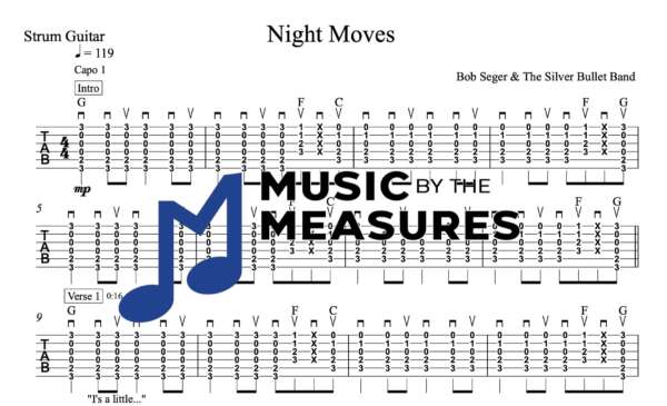 Strum Guitar Tablature for “Night Moves” by Bob Seger & The Silver Bullet Band
