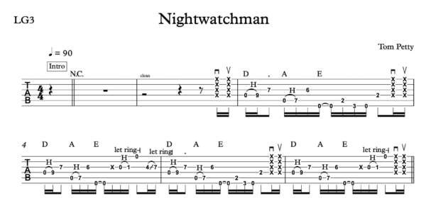 Lead Guitar Tablature for “Nightwatchman” by Tom Petty