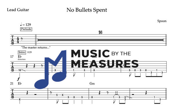 Lead Guitar Tablature for “No Bullets Spent” by Spoon
