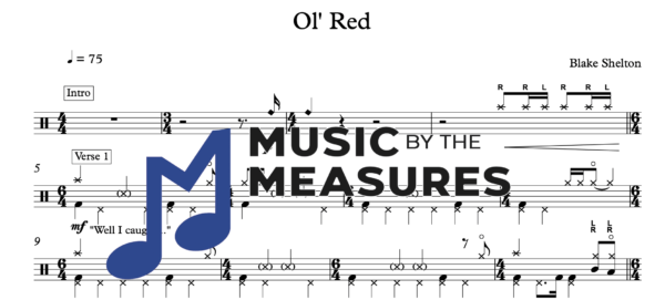 Drum Sheet Music for “Ol’ Red” by Blake Shelton