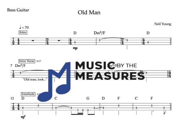 Bass Guitar Tablature for “Old Man” by Neil Young