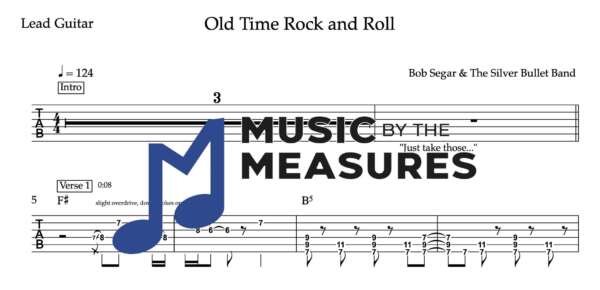 Lead Guitar Tablature for “Old Time Rock and Roll” by Bob Segar & The Silver Bullet Band