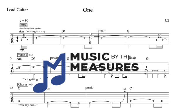 Lead Guitar Tablature for “One” by U2
