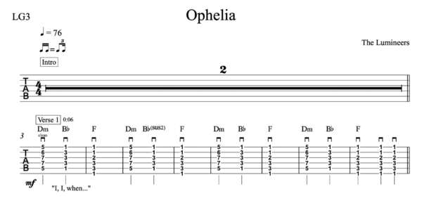 Lead Guitar Tablature for “Ophelia” by The Lumineers