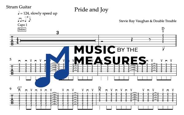 You need to be a member to be able to purchase this tab. Sign up nowStrum Guitar Tablature for “Pride and Joy” by Stevie Ray Vaughan & Double Trouble