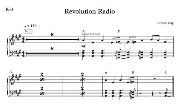 Keyboard Sheet Music for “Revolution Radio” by Green Day