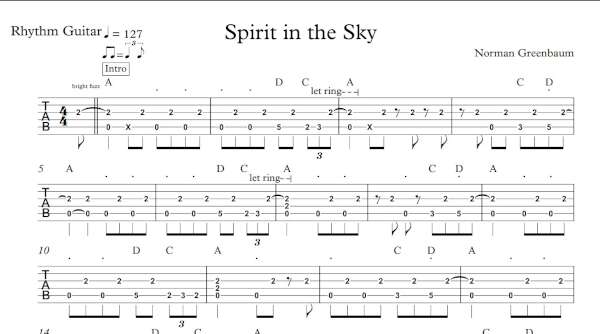Rhythm Guitar Tablature for “Spirit in the Sky” by Norman Greenbaum.