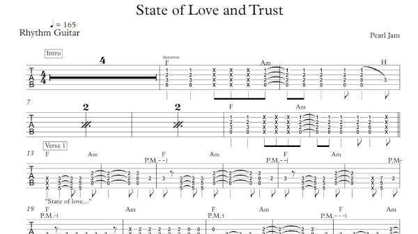 Rhythm Guitar Tablature for “State of Love and Trust” by Pearl Jam.