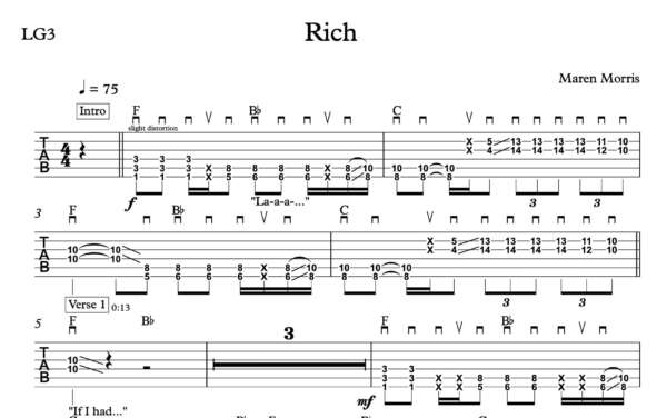 Lead Guitar Tablature for “Rich” by Maren Morris