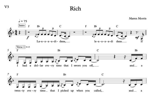 Melody Sheet Music for “Rich” by Maren Morris