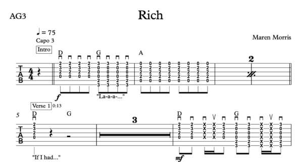Strum Guitar Tablature for “Rich” by Maren Morris