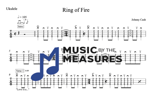 Ukulele Tablature for “Ring of Fire” by Johnny Cash