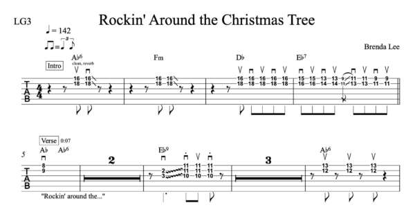 Lead Guitar Tablature for “Rockin’ Around the Christmas Tree” by Brenda Lee
