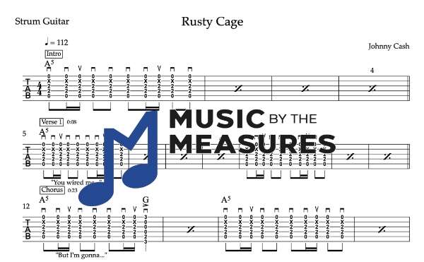 Strum Guitar Tablature for “Rusty Cage” by Johnny Cash