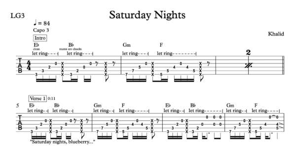 Lead Guitar Tablature for “Saturday Nights” Khalid