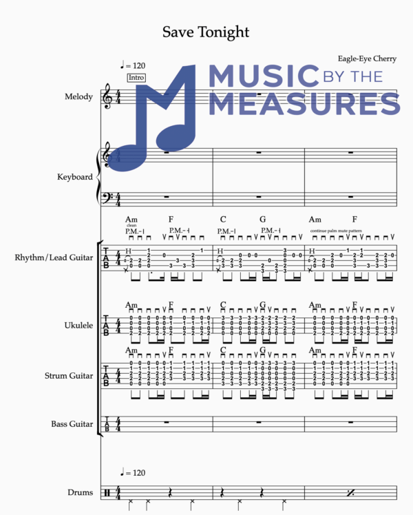 Full Band Sheet Music for “Save Tonight” by Eagle-Eye Cherry