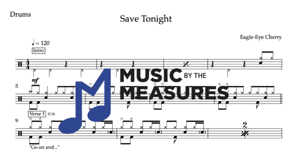 Drum Sheet Music for “Save Tonight” by Eagle-Eye Cherry