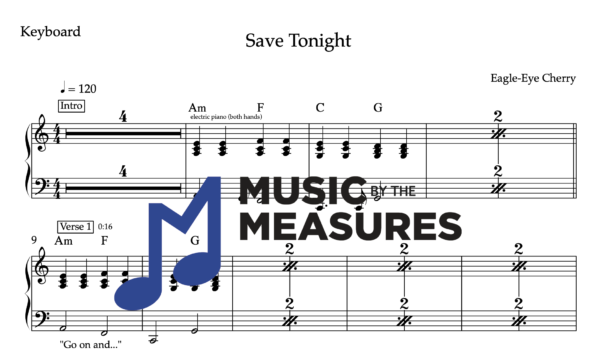 Keyboard Sheet Music for “Save Tonight” by Eagle-Eye Cherry