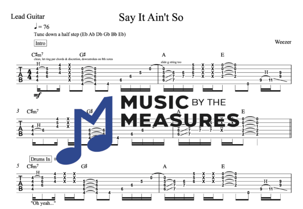 Lead Guitar Tablature for “Say It Ain’t So” by Weezer