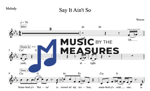 Melody Sheet Music for “Say It Ain’t So” by Weezer