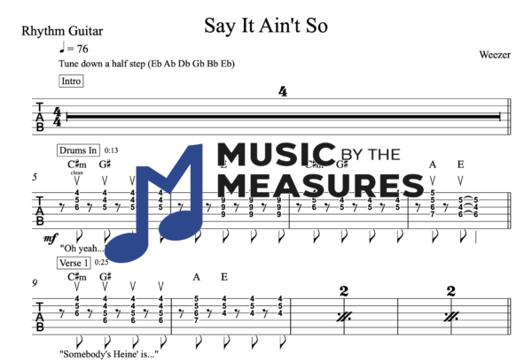 Rhythm Guitar Tablature for “Say It Ain’t So” by Weezer