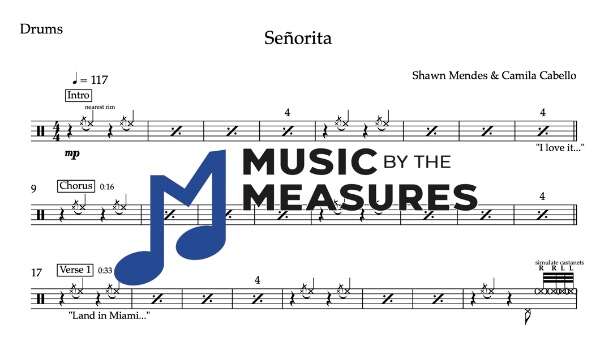Drum Sheet Music for ” Señorita” by Shawn Mendes & Camila Cabello